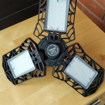 Three 3 x 2in diode panels shine 6000K (white light) for powerful illumination in any space. Made of plastic, our 40W Triple Garage Light makes a great choice for basements, garages, backyard sheds, parking garages, storage sheds, and so much more.