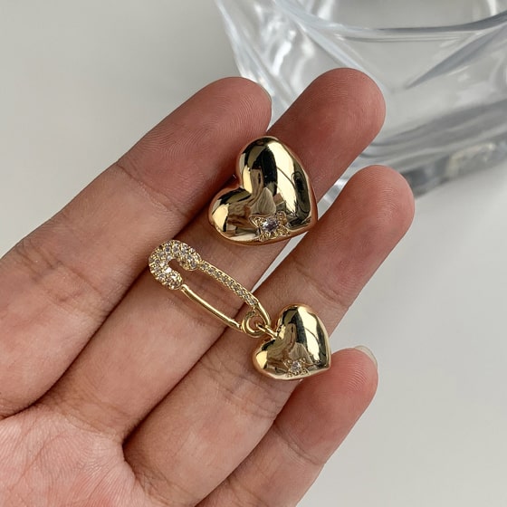 These earrings are so cute the mismatched size is so unique. They came and I was pleasantly surprised by the quality!