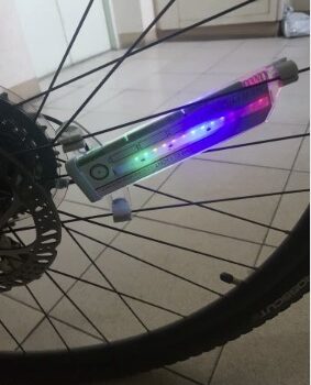 I'm using it on my electric bicycle I was very colorful it's fun it makes me impossible not to see what I'm writing I just wish I could adjust where it stays on my spokes other than that it's great