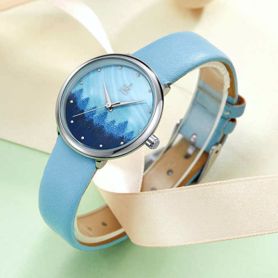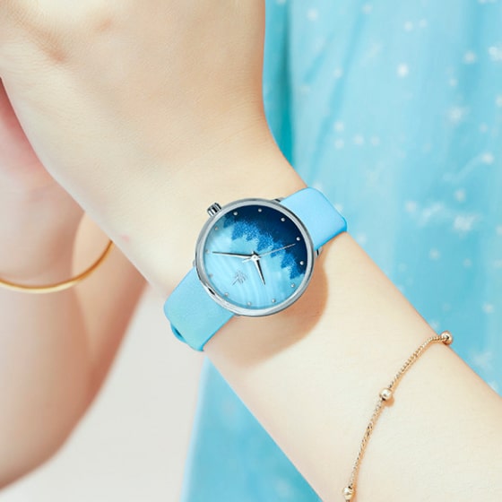 I have been looking for a blue watch forever. I'm so happy that I have stumbled upon this watch! I love it, it's the perfect color. The face is large enough that I can actually see it, but the band is thin (and fits my skinny wrist)! So it looks very feminine. Love love love it!