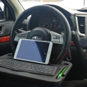 Measuring 11 inches across the steering wheel hold, our tray snugly fits the steering wheel of most modern cars. No balancing on your knees or anything. Whether you’re watching a movie to kill time or are finishing up a weekly report for work, our tray will support you until the end.