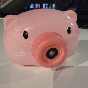 Bring a one-of-a-kind bubble-blowing pig to any party or child gathering for lighthearted fun indoors or outdoors. Our Cute Pig Bubble Maker is camera-inspired, complete with a convenient carry strap for on-the-go bubbles and joy.
