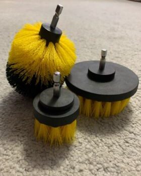 Medium-stiff nylon on all brush heads attach effortlessly to any cordless drill.