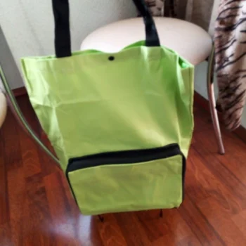 Bought this bag for grocery shopping in downtown Chicago. Needed a bag with good wheels, good holding capacity, and ability to zip close due to rain. All expectations met and it is a work horse. I have carried 12 pack seltzer water, two wine bottles, two large lemonade bottles, meat, cheese, fish, crackers, bread, salad supplies etc... in one trip. I like the outside pocket for my umbrella and sunglasses etc... I have also used this bag to pull two full size camping chairs to outside movies etc... Wheel are excellent and bag bumps up over curbs. Handles (two of them )are strong and good for getting on and off public transportation with a heavy load. Check the different colors on pricing as I got the black and white with good discount.
