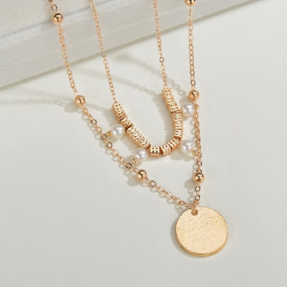 Loved this simple layered necklace. Wore it to a wedding and continued to wear different layers throughout my trip. Works great all together or separately. Good quality too, didn’t turn skin green or anything. Would buy again.