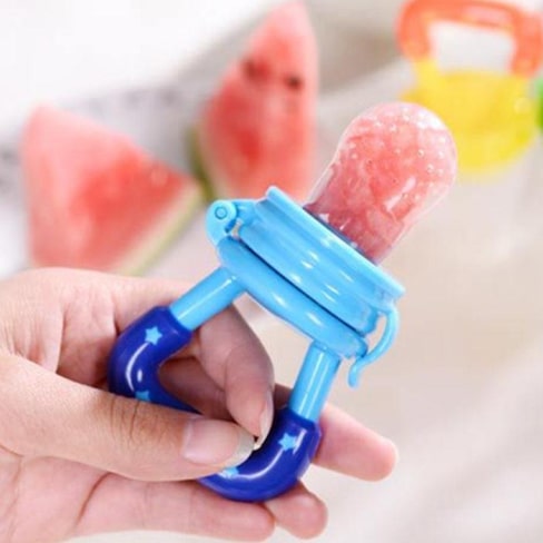So I saw the mesh screen feeders & thought that would be neat until I wondered how they'd be cleaned... Someone had given me one as their little one out grew the need for it, and as I suspected, it was yucky! I threw it out & went on the hunt for something better. I came across these silicone fruit feeders & I loved them as much as our little one did! There were different sizes (and the nipple parts are interchangeable so you can stick with a favorite color if you'd like) and you can make sure the feeders actually get cleaned! It might be a tad tricky to get into the smaller size without brushes & such, but it's well worth it. I'm sure that pending the foods you put into the nipples, it may change the color of the nipples. We noticed that over a few uses the size we favored had a yellowish tint to it. Really these feeders were just right for us. Peace of mind for us & our increasingly independent little one got to eat lots of yummy foods on his own!