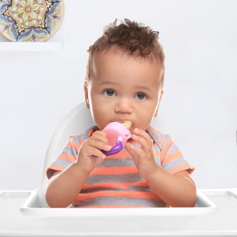 These came in so handy when my baby was starting solids. Just put the food inside and let him mush it up himself!