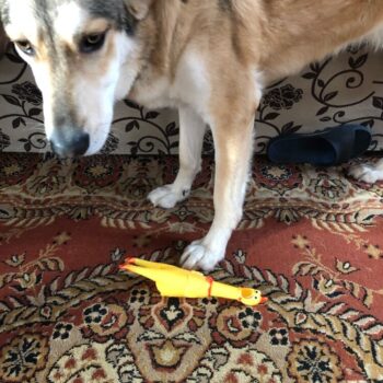This is my dogs favorite toy! He has had one for years- it is his present to us when we get home or he has does something he is good, etc.... his last one broke after five years of hard use.... I needed one quickly so I ordered a replacement "chicken". It came quickly and was exactly as was expected... it even looks better made than the original one I had... thick rubber chicken with squeaker.... such a happy dog again!!! I was very happy with the customer service, was they send a thank you note too!