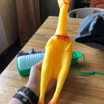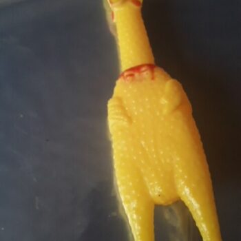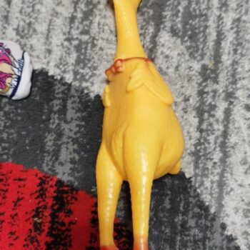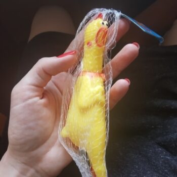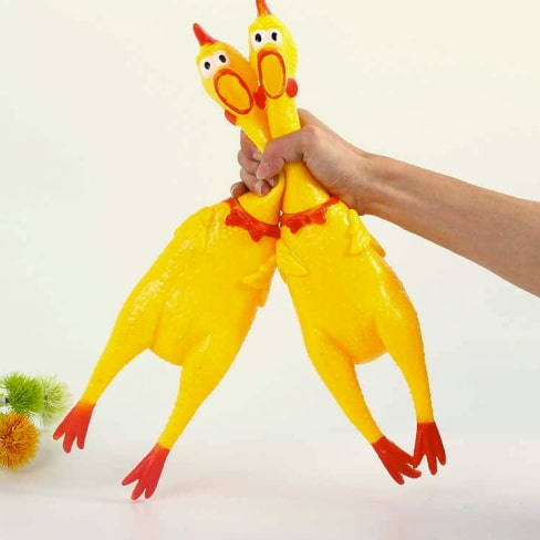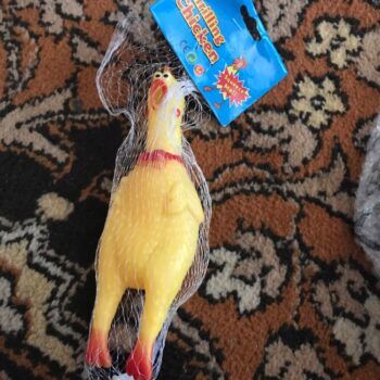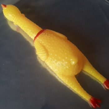 Fair enough product for a cheap rubber chicken. However, if you’re buying this chicken to use as an instrument to play songs like you may have seen on YouTube… Definitely not good for that. The pitch is not variable No matter if you squeeze it hard or soft, faster slow. One pitch only. You’re probably not purchasing this chicken to make music like I was, so I’m sure you’ll be just fine!! If you are intrigued and a little adventurous, get on YouTube and type in “Bohemian Rhapsody, rubber chicken“ in the search bar. 🤣