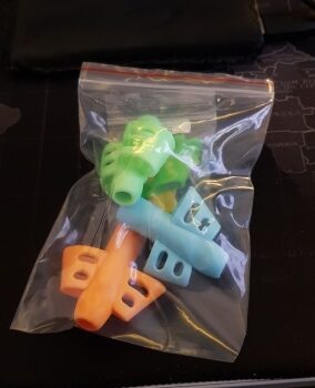 Great set of accessories. My daughter is autistic and struggles with holding pencils. This has helped with her tracing so much. I do wish one set was large for markers or the larger #2 pencils they use in kindergarten. Other than that, great item.
