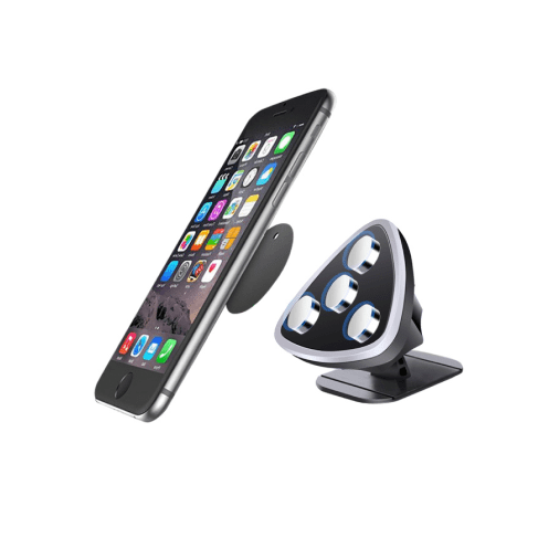 This is a great little phone holder! My phone case has a magnet built in and sticks to this perfectly. It is very easy to install as it already has a self-stick label on it and it can be adjusted to swivel at the perfect angle. I added my own self stick stylus holder to it for convenience. I purchased two packs so I had one for both the driver and passenger seat. When I am riding as a passenger and taking zoom calls for work this perfectly holds my phone at a great angle as well.