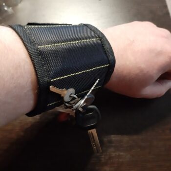 Perfect for when you’re doing takes around the house. It’s really nice that when I had to go up the ladder I had all the items I needed right there at my wrist and didn’t have to go back up and down or have my kiddos handing me items and whining about it. The magnet strength is super impressive and able to form around your wrist so it doesn’t feel uncomfortable. You can see in my picture how it could hold my wire strippers. These bands are game changer and not sure how I’ve gone without it!!