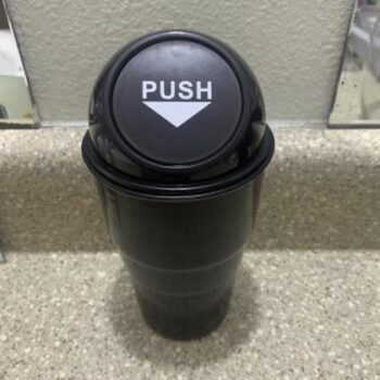 I always use a small trash bag in my car. My husband hates to have a trash bag. I bought a set of these compact trash cans. The size is perfect for a cup holder. The size allows for fairly large pieces of paper, wrappers, and other trash. Press the opening for easy disposal. When full, empty the contents and rinse the plastic as needed. Even my husband loves the design, convenience, and tidy appearance. So, we both approve.