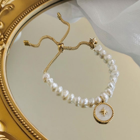 This bracelet is beautiful. The pearls have great sheen and luster. The color of the white pearls is perfect. These freshwater pearls are almost completely round. I highly recommend this brand of pearls. I will be purchasing more jewelry from this seller.