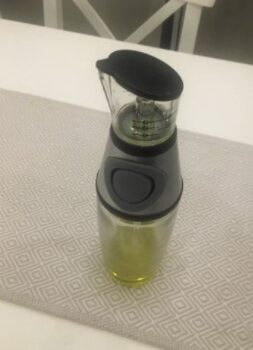 Love this dispenser! This purchase was inspired by Home Chef meal kids I’ve been getting for over two years and have guessed or caused extra dishes on the olive oil volume the entire time. Everything else comes pre-measured. This is SO much quicker and easier to use! I love that it can be cleaned in dishwasher, hate washing oily bottles. This time the stars aligned and I absolutely LOVE this product!!