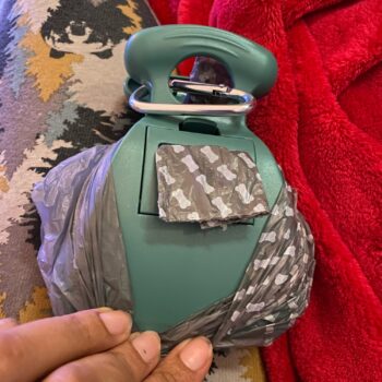 This thing seems silly to have, but it is a big help. No more warm squishy feeling when picking up after my dog. I love that it works with standard poop bags since I have so many of them. It’s a huge plus that this thing stays clean too. Simply put this device into a poop bag, open it, push the bag into the “jaw” and secure it in the silicone teeth. Once you’re done picking up, you can simply leave the jaw closed, pull the back back around the device, and tie it then open the jaw over the trash and boom, mess averted.