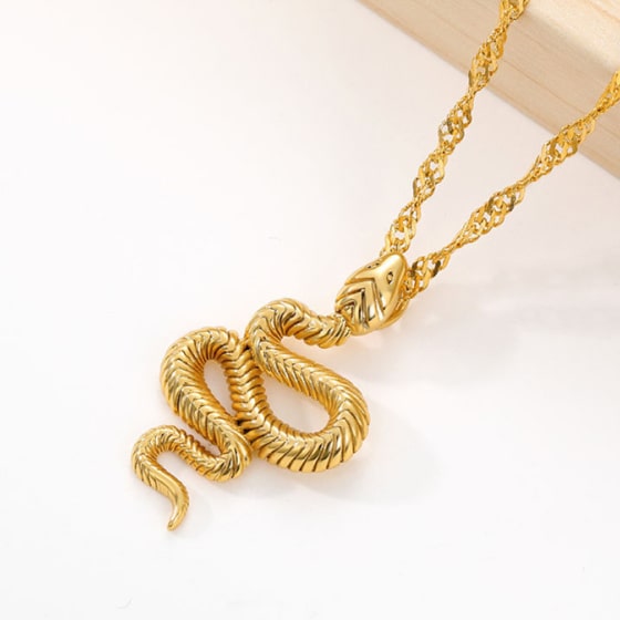 I got the snake necklace and i was sure it would tarnish and look super gross after only a few wears but to my surprise I’ve been wearing it almost daily and the snake and chain are still bright gold! Great purchase!