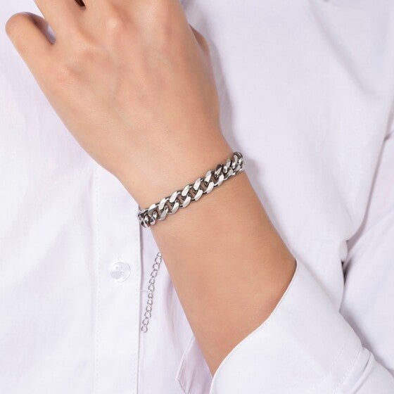 This is a nice wardrobe accent. It is elegant and looks great with casual and formal wear. The bracelet has the added benefit of being particularly durable, there is no sign of wear or discoloration after extended use, and it is relatively easy to put on the wrist or take it off with one hand. I wear this often, and the clasp has never failed. I'm pleased with this purchase.