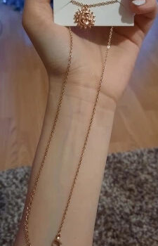 This necklace was bought as a small gift for my 20 yo daughter. She loves it, wears it all the time. Tender and cute necklace