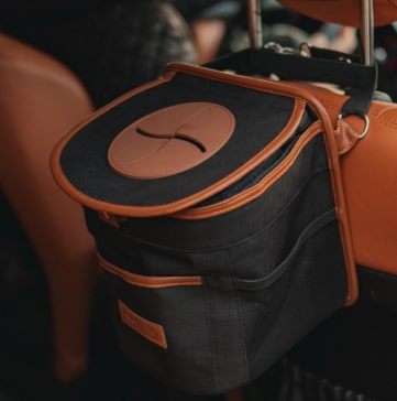 The trash can came in a beautiful package, perfect for a gift. Inside, there is double bottom with waterproof lining. Outside, there are pockets to store snacks, hand sanitizers or napkins. The attachment strap is long and made of durable textile. Overall, it’s a great accessory for your car, especially on the road with family or friends.