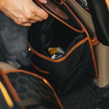 wonderful garbage bag , compact , easy to clean… an indispensable thing, especially for long distance trips. helps keep the car tidy,and besides looks very stylish !