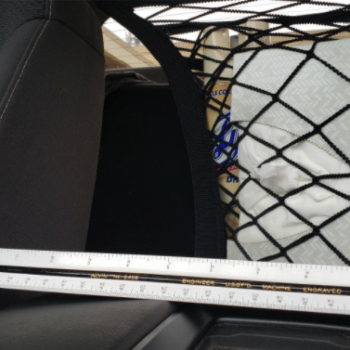 When installed, you get 9.8 x 98 in / 25 x 25 cm of black nylon mesh that securely holds magazines, water bottles, sunglass cases, kids’ toys, tablets, snacks (and so much more). Gain extra space in your vehicle without over-cramming compartments and backseat pockets.