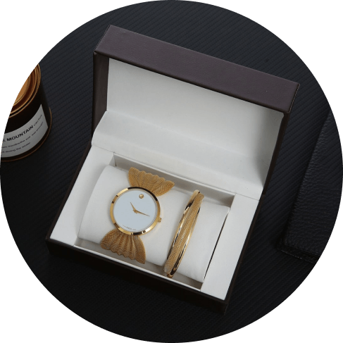 I absolutely adore this set. The watch itself is gorgeous and dainty enough to keep its femininity. The bracelet is just as dainty and feminine as the watch. The set came in a great quality box that would make this a fantastic set to gift to a loved one.