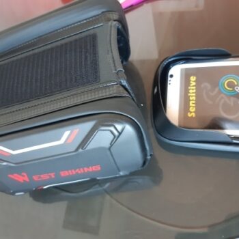 “This works great on my bike. The two side pockets are great for small bike tools and my small wallet. The plastic screen over the phone works great. I have no issues using my phone. It keeps my phone dry and safe.”