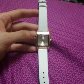 This is a very nice watch. My watches with white bands are getting a bit old so I decided to buy a new one. I saw this one and it is so cute with a big square face and golden color case and hands. It also has a nice band. Would totally recommend it!!!