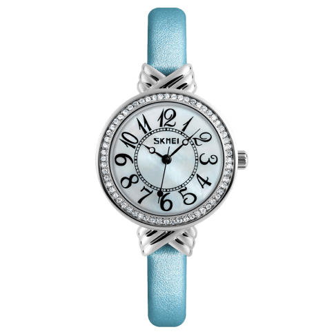 I love this watch, It is exactly what I was looking for. Face of the watch is beautiful and the light blue leather band really complements it. I have received several compliments on it. I would buy it again.